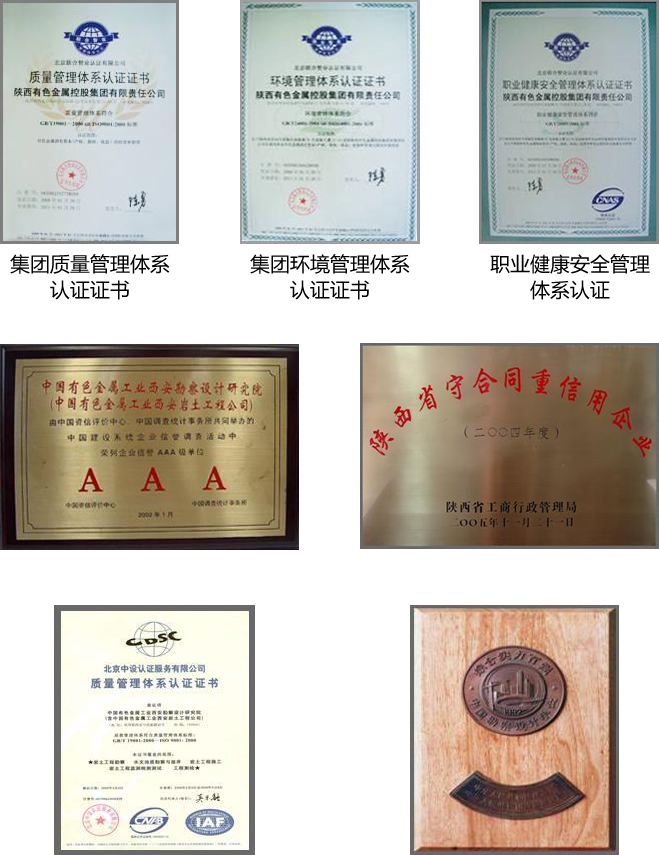 西安有色冶金設計研究院具有國家建設部、國家發改委頒發的冶金行業、建筑行業、工程咨詢、工程造價四項設計、咨詢甲級資質和城市規劃、工程監理、壓力管道、安全評價四個乙級資質。可承擔國內外大、中型冶金、礦山工程、土木建筑工程可行性研究、初步設計、施工圖設計以及科研攻關、機電一體化、自動化技術研究,并能進行工程項目管理、工程監理和工程承包,是《陜西省工程勘察設計行業從業公約》發起單位,通過ISO9001-2000質量管理體系、ISO14000-2004環境管理體系、OHSAS18000職業健康安全三大管理體系認證。