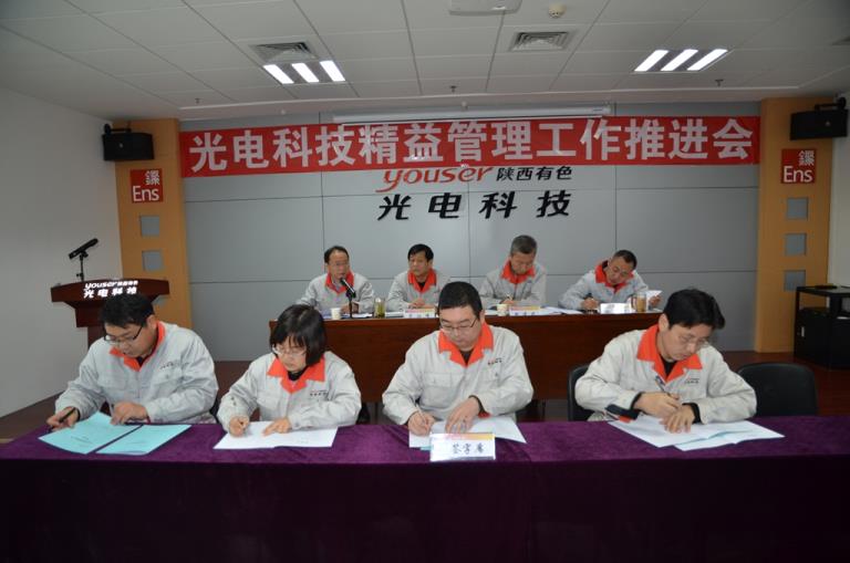 會議宣讀了《陜西有色光電科技有限公司精益管理工作推進方案》《強力推進精益管理干部考核辦法》等。會上,公司與開展精益管理工作的各部門負責人簽署了《持續推進精益管理工作承諾書》;公司總經理田建之向各單體精益專員頒發了委任狀。