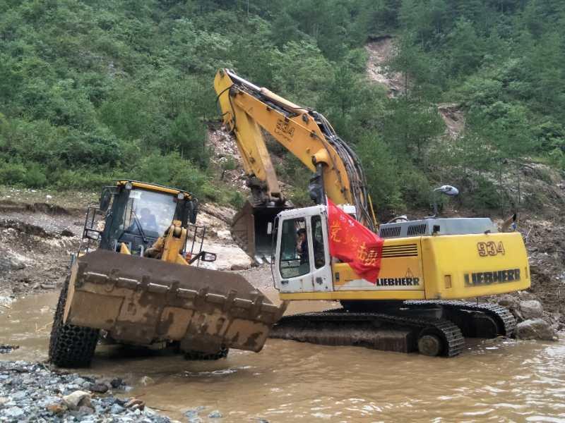 8月10日,沒有顧得上休整,王振克再次奔赴洛南麻坪援建搶修水毀道路。為了保證此次任務(wù)的安全順利完成,露天礦養(yǎng)路隊(duì)成立黨員突擊隊(duì),由王振克擔(dān)任隊(duì)長(zhǎng),負(fù)責(zé)麻坪援建搶險(xiǎn)。由于所修道路大多在兩山中間的峽谷地段,環(huán)境惡劣,期間經(jīng)常出現(xiàn)汛情預(yù)警,還時(shí)常下大雨。有的路面懸空,有的路段有塌方和泥石流,河道內(nèi)有暗流和深坑,還有很多水壩和沖溝,王振克在每天設(shè)備作業(yè)前或每修一段路前,都要提前判斷人員設(shè)備在大雨、塌方、泥石流等危險(xiǎn)狀況下的撤離路線和安全地點(diǎn)。有的路段需要墊幾米深的砂石,推近緩慢。有時(shí)一晚上大雨沖毀了前一天修的路段,第二天就及時(shí)補(bǔ)修。為了防止河水對(duì)所修道路的沖刷,挖河改道1000多米。由于遠(yuǎn)離礦區(qū),他們每天早晨7點(diǎn)出發(fā),傍晚才能結(jié)束一天的工作返回休息,克服了吃飯不便,通訊中斷等困難,爭(zhēng)分奪秒,加班加點(diǎn),沒有休息過一天,直到8月24日順利完成任務(wù)。