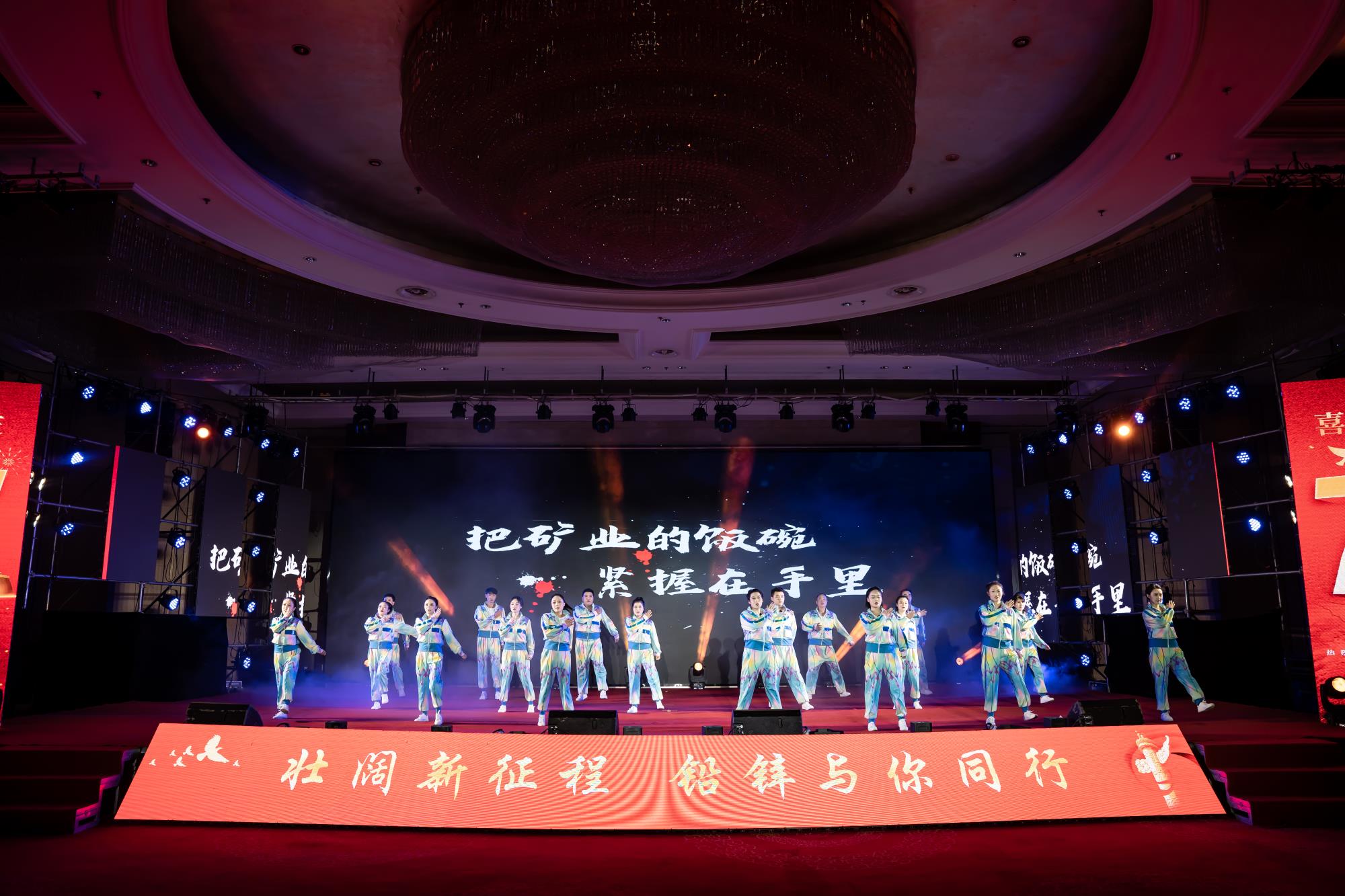 當(dāng)磅礴激昂的音樂(lè)響起,開(kāi)場(chǎng)舞《新起航》瞬間點(diǎn)燃了現(xiàn)場(chǎng)熱烈的氛圍。舞者們?nèi)橥度搿⑻じ瓒校瑤е般U鋅人”對(duì)揚(yáng)帆新征程、挑戰(zhàn)新賽道的信心與決心,在舞臺(tái)上歡快律動(dòng),贏得了觀眾雷鳴般的掌聲。本次文藝匯演圍繞“壯闊新征程 鉛鋅與你同行”主題,分三個(gè)篇章講述了中國(guó)共產(chǎn)黨帶領(lǐng)全國(guó)各族人民砥礪前行、不懈奮斗,從一窮二白走向繁榮昌盛,以及“鉛鋅人”堅(jiān)持一張藍(lán)圖繪到底,不懼風(fēng)雨、不畏風(fēng)險(xiǎn)、團(tuán)結(jié)拼搏的心路歷程。