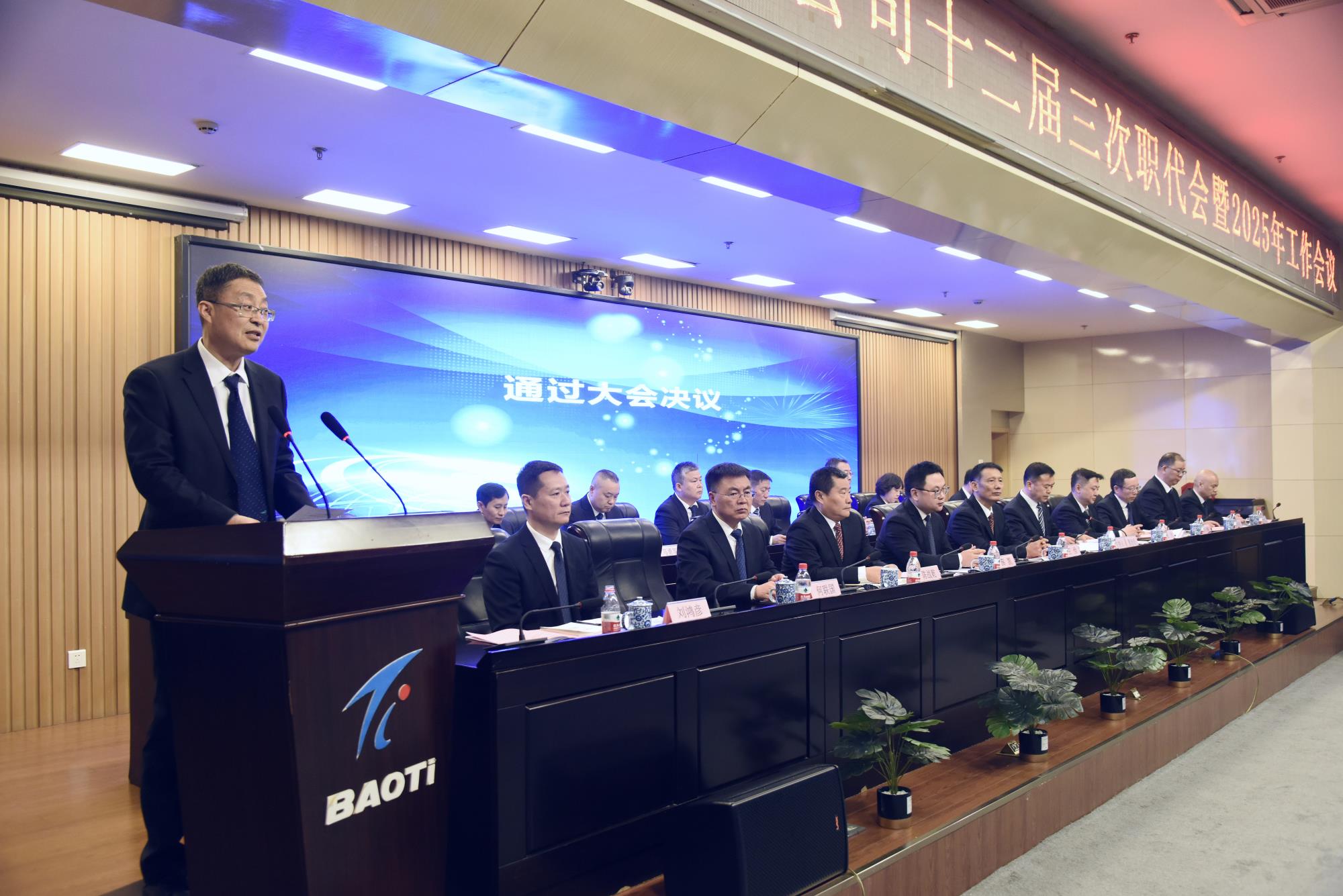 1月23日,寶鈦集團十二屆三次職代會暨2025年工作會議順利召開。集團黨委書記、董事長、總經理王儉作工作報告,黨委副書記、工會主席賀治民主持會議,黨委委員、副總經理何聯國傳達上級會議精神。