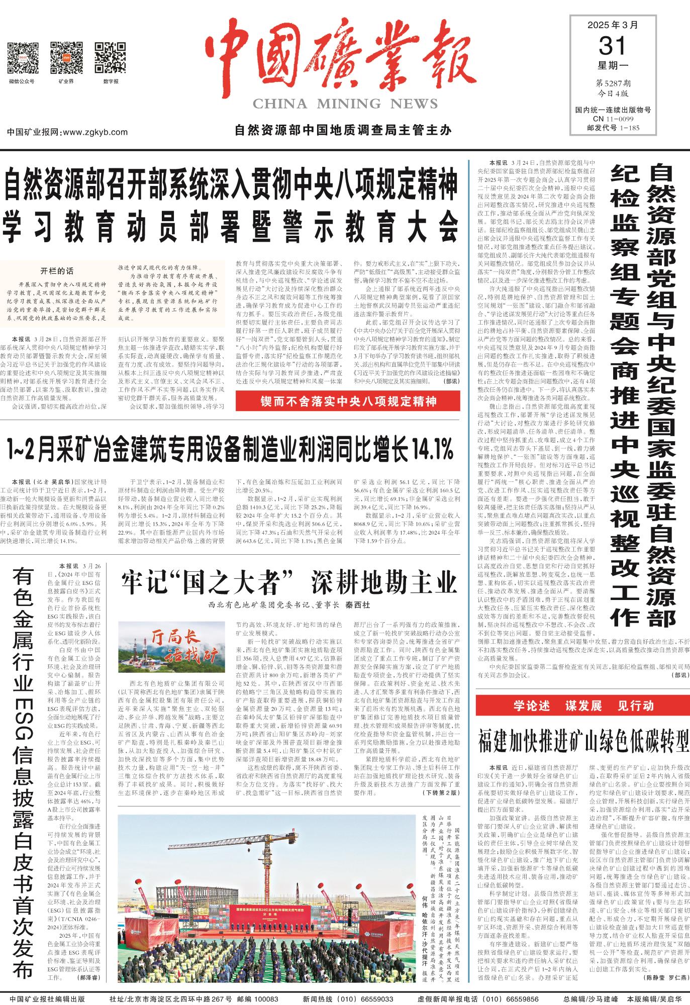 近期,《中國礦業報》開設了“廳局長話找礦”欄目。該欄目邀請各省(區、市)自然資源主管部門、地勘單位負責人撰寫署名文章,深入交流央地企合作新機制下“十四五”找礦成績和經驗,并謀劃展望“十五五”找礦工作。2025年3月31日,《中國礦業報》頭版刊出了該欄目的第21篇文章,即地礦集團、黃金集團黨委書記、董事長秦西社的署名文章。全文如下:
