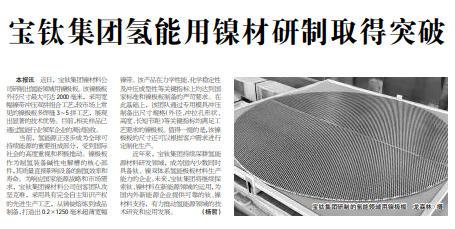 近年來,寶鈦集團持續深耕氫能源材料研發領域,成為國內少數同時具備鈦、鎳雙體系氫能極板材料生產能力的企業。未來,寶鈦集團將繼續探索鈦、鎳材料在新能源領域的運用,為國內外新能源企業提供可靠的鈦、鎳材料支持,有力推動氫能源領域的技術研究和應用發展。