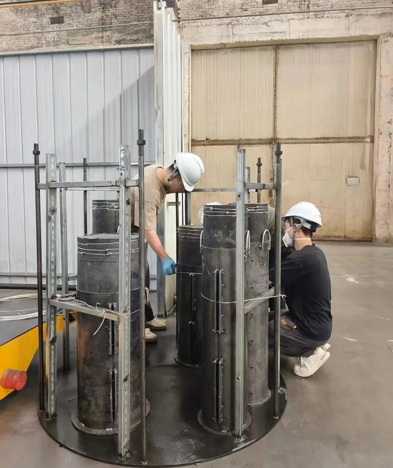 研發(fā)中心黨支部緊盯項目攻關(guān)各環(huán)節(jié),遇到大尺寸型材成型不穩(wěn)定、燒結(jié)參數(shù)難把控等“卡脖子”問題,第一時間組織專家開展專題研討會,黨員骨干帶頭亮思路、獻方案。辦公桌上攤著圖紙報表,白板寫滿公式,這是該團隊無數(shù)次交流的場景。“作為黨員,必須啃下硬骨頭。”實驗室里,青年黨員汪澤瑾已連續(xù)工作十余個小時,反復(fù)調(diào)試配方,筆記本上原料配比、燒結(jié)溫度記錄密密麻麻,鉛筆標注的修改痕跡層層疊疊。生產(chǎn)車間內(nèi),“黨員先鋒崗”——職工趙永喆穿梭在設(shè)備間,輪班值守生產(chǎn)線,緊盯擠壓過程細節(jié),汗珠浸透工裝也渾然不覺。