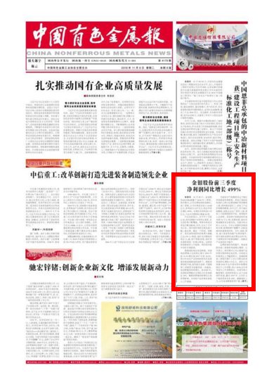 10月22日,金鉬股份(601958)披露了2018年三季報。報告期內(nèi),公司業(yè)績保持較高增長。前三季度,公司實現(xiàn)營業(yè)收入64.82億元,凈利潤為2.27億元,較去年同比增長499%。實現(xiàn)扣非凈利潤1.91億元,與去年同期相比增逾18倍。