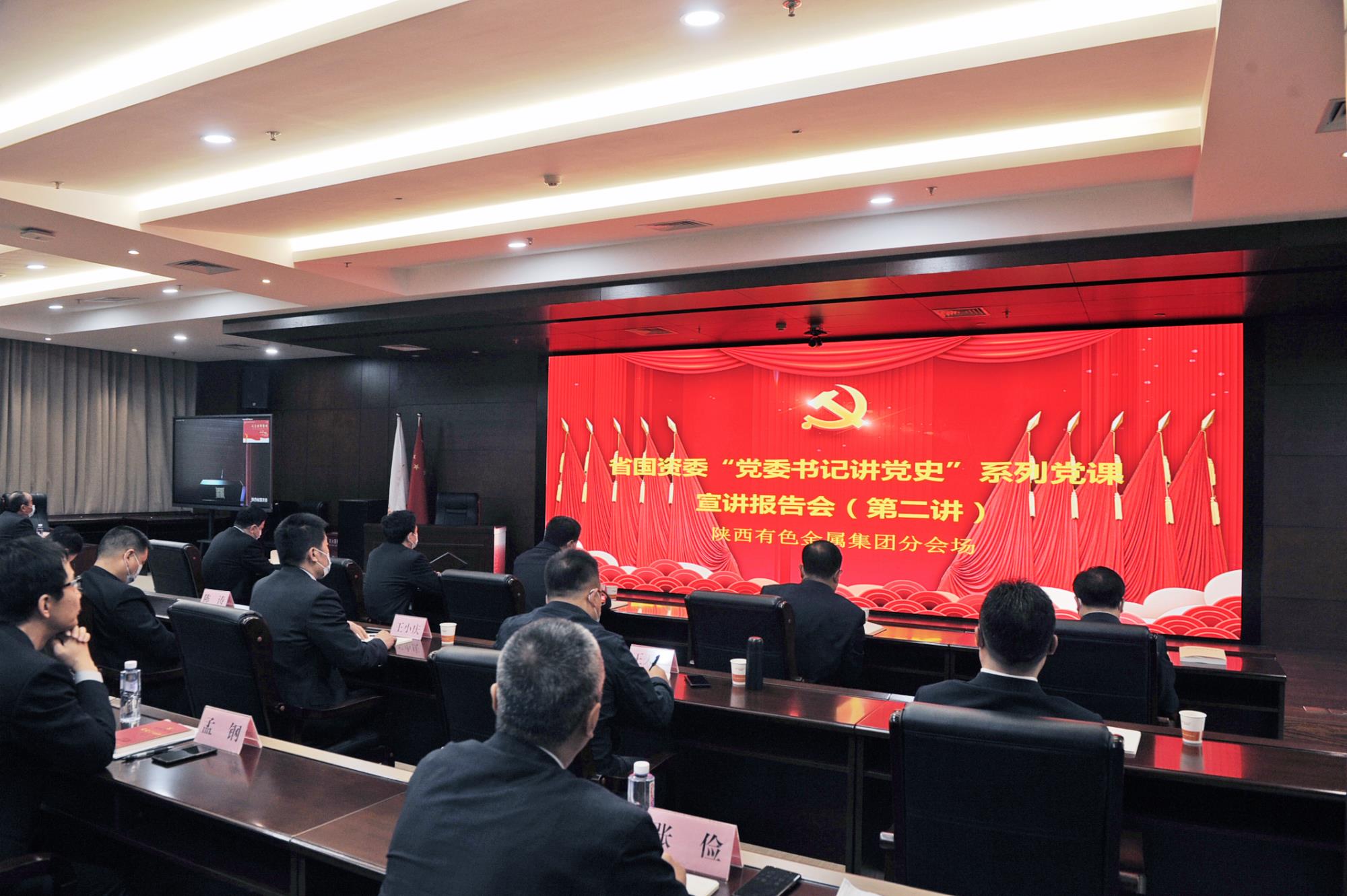 聆聽百年黨史,賡續紅色血脈。4月28日上午,省國資委“黨委書記講百年黨史”系列黨課宣講報告會第二講開講。省國資委黨委書記劉斌主持報告會。陜西有色金屬集團黨委書記、董事長馬寶平,黨委副書記、總經理鄒武裝等領導班子成員,總部中層干部及部分權屬企業黨員代表,在集團公司分會場聆聽宣講。各權屬企業領導班子成員在各單位分會場參加報告會。