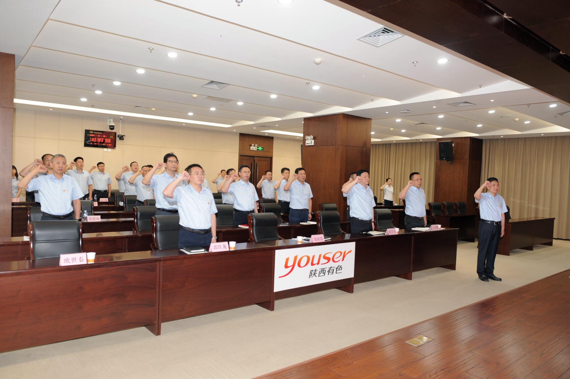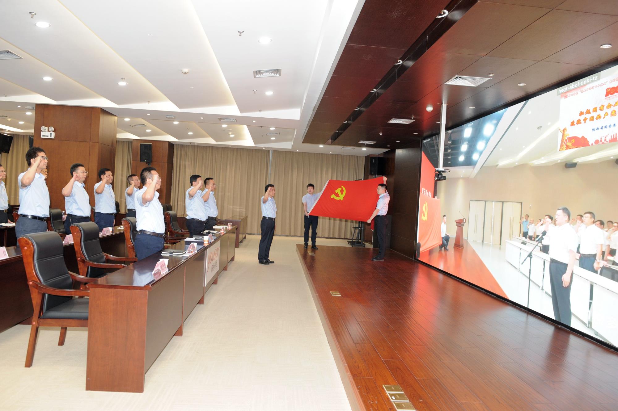 宣講報告結束后,面對鮮紅的黨旗,劉斌在主會場帶領全體參會黨員集體宣誓,重溫了入黨誓詞。與會同志在嘹亮的錚錚誓言中,進一步堅定理想信念,牢記初心使命。陜西有色金屬集團黨委副書記、總經理鄒武裝在集團公司分會場領誓,集團公司領導班子成員及總部中層以上干部進行宣誓。