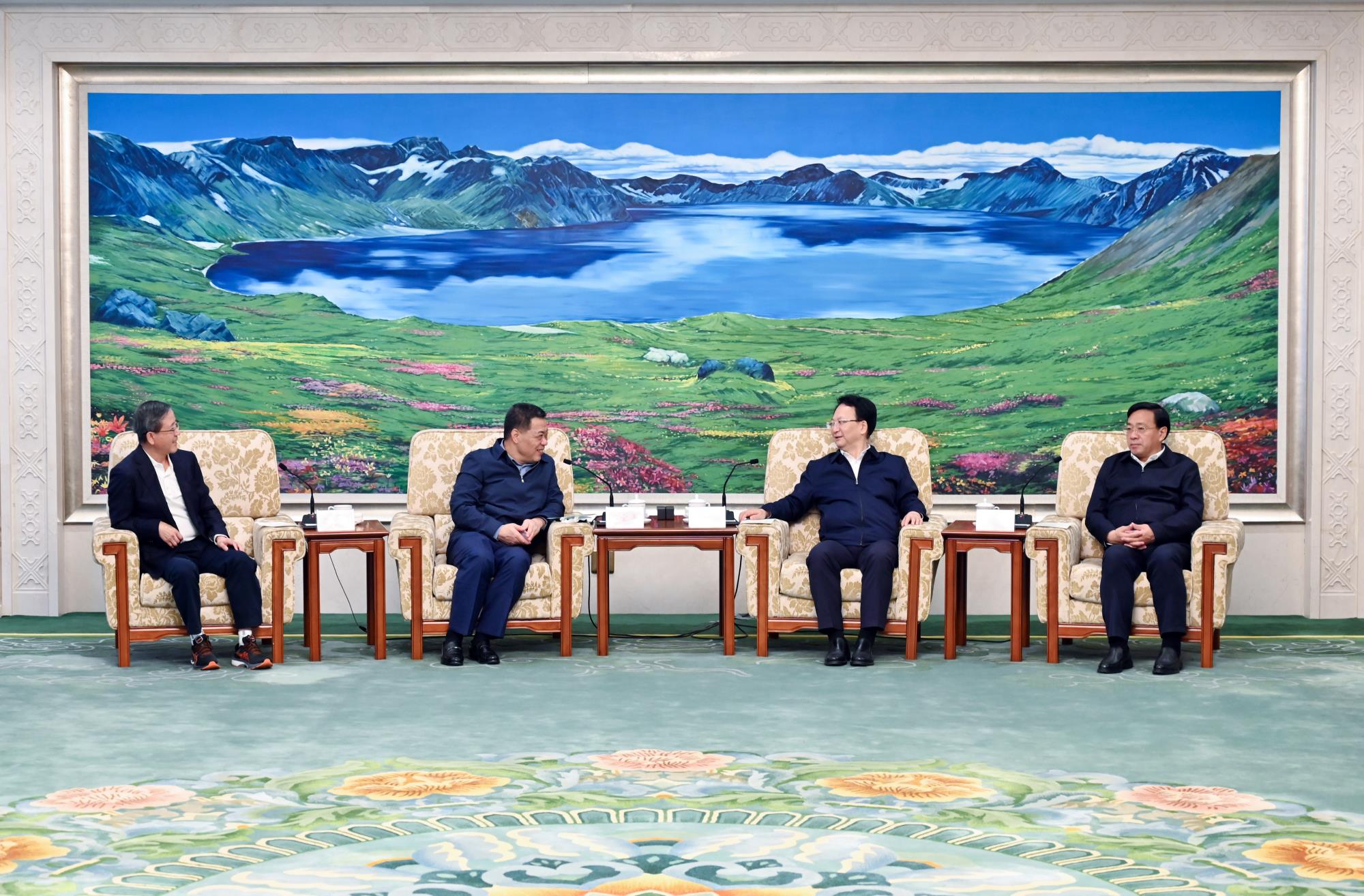 22日下午,馬寶平一行赴長春拜訪了吉林省委書記景俊海,吉林省委副書記、省長韓俊,陜西省決策咨詢委員會副主任、陜西省原副省長吳登昌參加會見。景俊海指出,近年來,陜西有色金屬集團主動落實吉陜合作協議,加大在吉投資,合作建設項目,取得積極成果。希望陜西有色金屬集團深入貫徹習近平總書記視察吉林重要講話重要指示精神,認真落實李克強總理來吉考察指示要求,進一步深化與吉林的務實合作,推進舒蘭鉬礦項目早建成、早投產、早見效,積極引進上下游企業共同依法依規參與資源開發利用,聯合布局一批大項目、好項目,著力延伸產業鏈條、擴大產業規模、形成產業集聚、實現互利共贏,促進“吉陜一家親”走深走實走好。馬寶平表示,一定堅持生態優先、綠色發展,進一步擴大在吉投資合作,攜手建好項目、壯大產業,讓吉林優質資源就地轉化增值,為吉陜合作增光添彩。