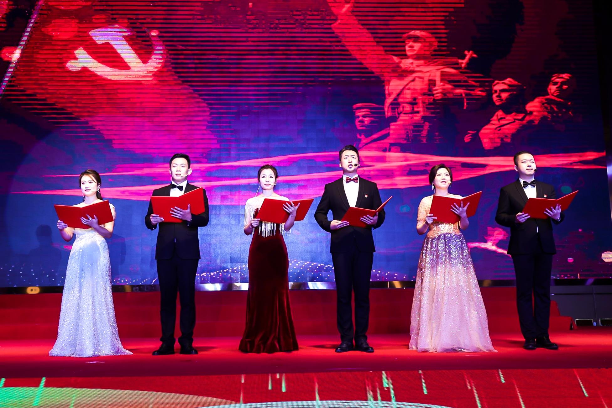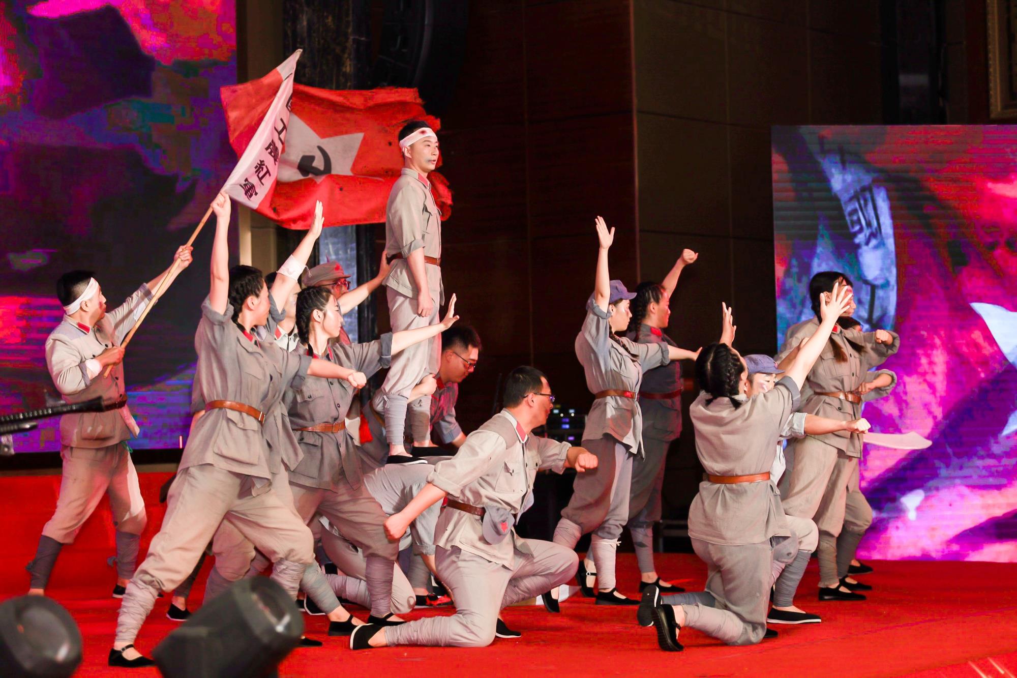 從嘉興的小小紅船,到井岡山的星星之火,再到西柏坡“兩個務必”的諄諄告誡、天安門上的莊嚴宣告,28年浴血奮戰,中國共產黨百煉成鋼,無數中華兒女用生命和熱血換來了新中國的成立。第一篇章“初心如磐”以音詩畫《初心》、歌伴舞《英雄贊歌》、詩歌朗誦《我是一名共產黨員》、男生獨唱與嗩吶演奏《東方紅》等節目,生動展現了在戰火紛飛的革命年代,老一輩共產黨人浴血奮戰、攻堅克難的英雄本色,將黨和企業的奮斗故事娓娓道來,充分詮釋了偉大建黨精神,喚起了現場黨員繼承先烈遺志、弘揚革命精神,奮勇向前的初心與決心。