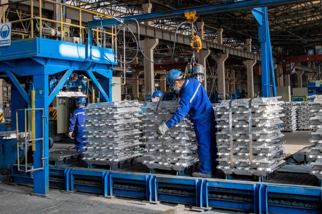在陜西有色榆林新材料集團(tuán)鑄造車間,工人師傅正忙著對(duì)生產(chǎn)線上的鋁錠打捆。
