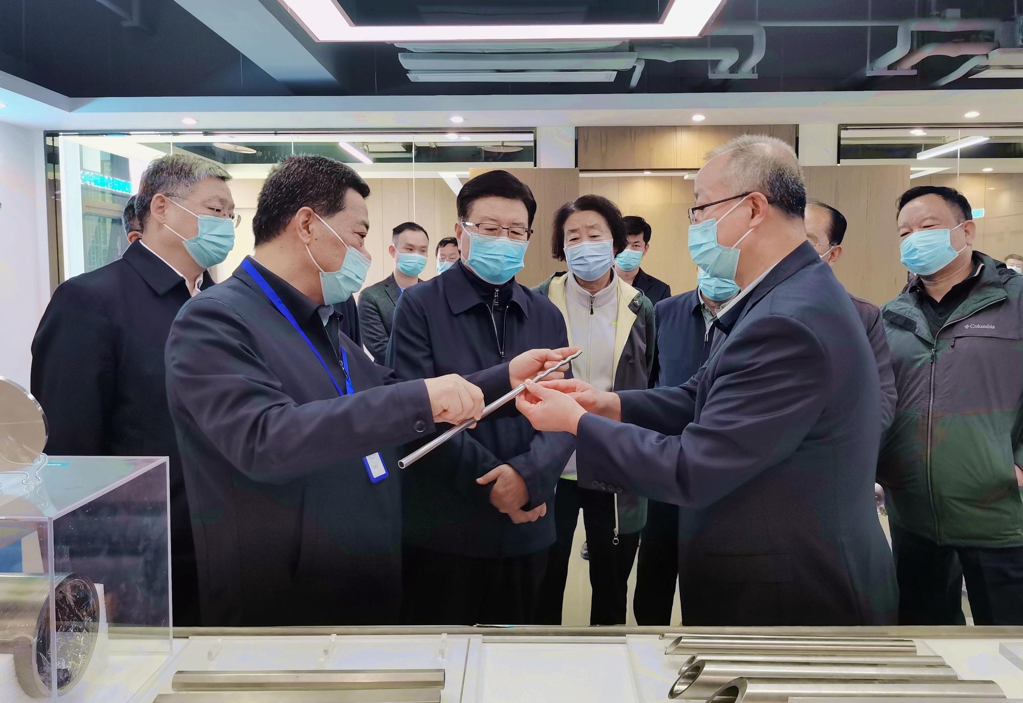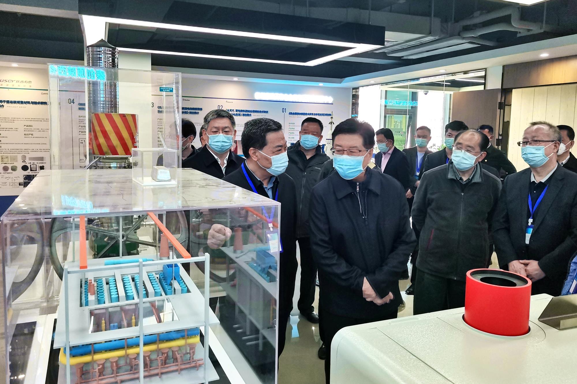 馬中平觀看了陜西有色金屬集團聯合創新中心鉬合金靶材、鉬合金包殼管、4500米深潛器載人球艙、真空電子束冷床爐、雙極板用TA1鈦帶、全釩液流電池、匯碳建材等科研樣品及模型,對集團公司的科技創新和平臺建設給予充分肯定。陜西有色金屬集團黨委書記、董事長馬寶平匯報有關情況,黨委委員、副總經理黃忠良參加。