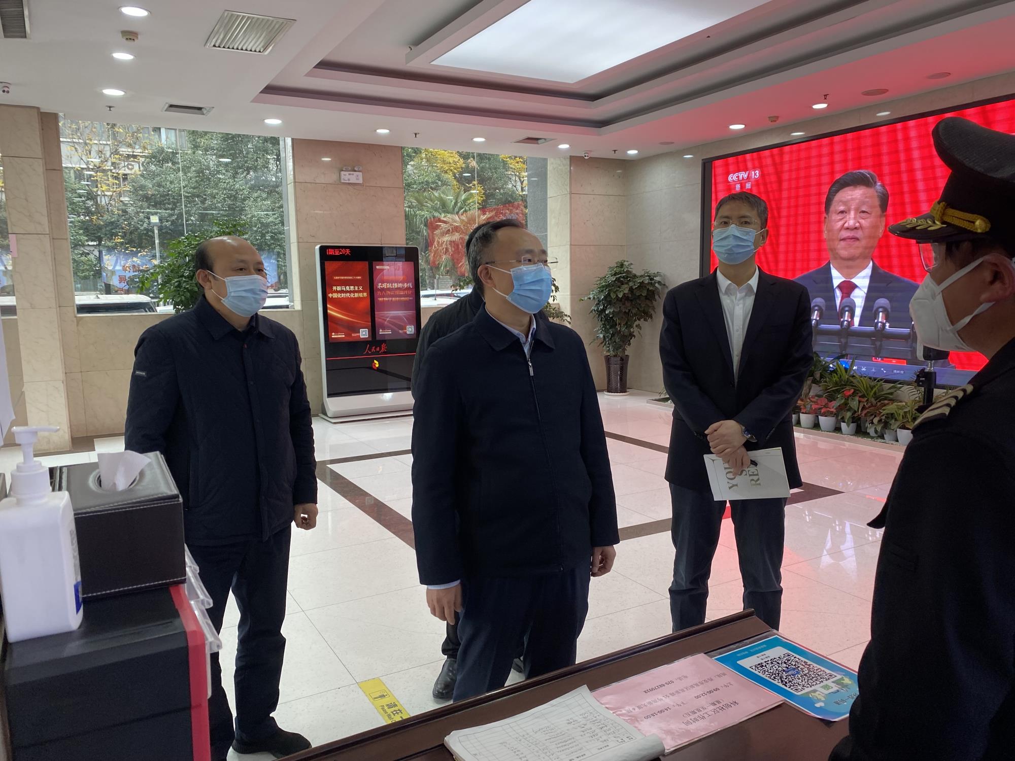檢查組首先來到大廈一樓,詳細(xì)了解門禁管控措施落實情況。黃忠良指出,要完整準(zhǔn)確全面貫徹落實習(xí)近平總書記關(guān)于疫情防控工作重要講話重要指示精神和黨中央決策部署,認(rèn)真貫徹執(zhí)行省委省政府工作要求,堅持第九版防控方案、落實二十條優(yōu)化措施。要進(jìn)一步夯實“四方”責(zé)任,不斷優(yōu)化防控措施,堅決履行防控主體責(zé)任,認(rèn)真落實各項常態(tài)化疫情防控舉措,進(jìn)入大廈必須掃碼、測溫,核對健康碼、行程碼和核酸檢測陰性結(jié)果,仔細(xì)進(jìn)行出入登記,確保大樓安全、人員安全。