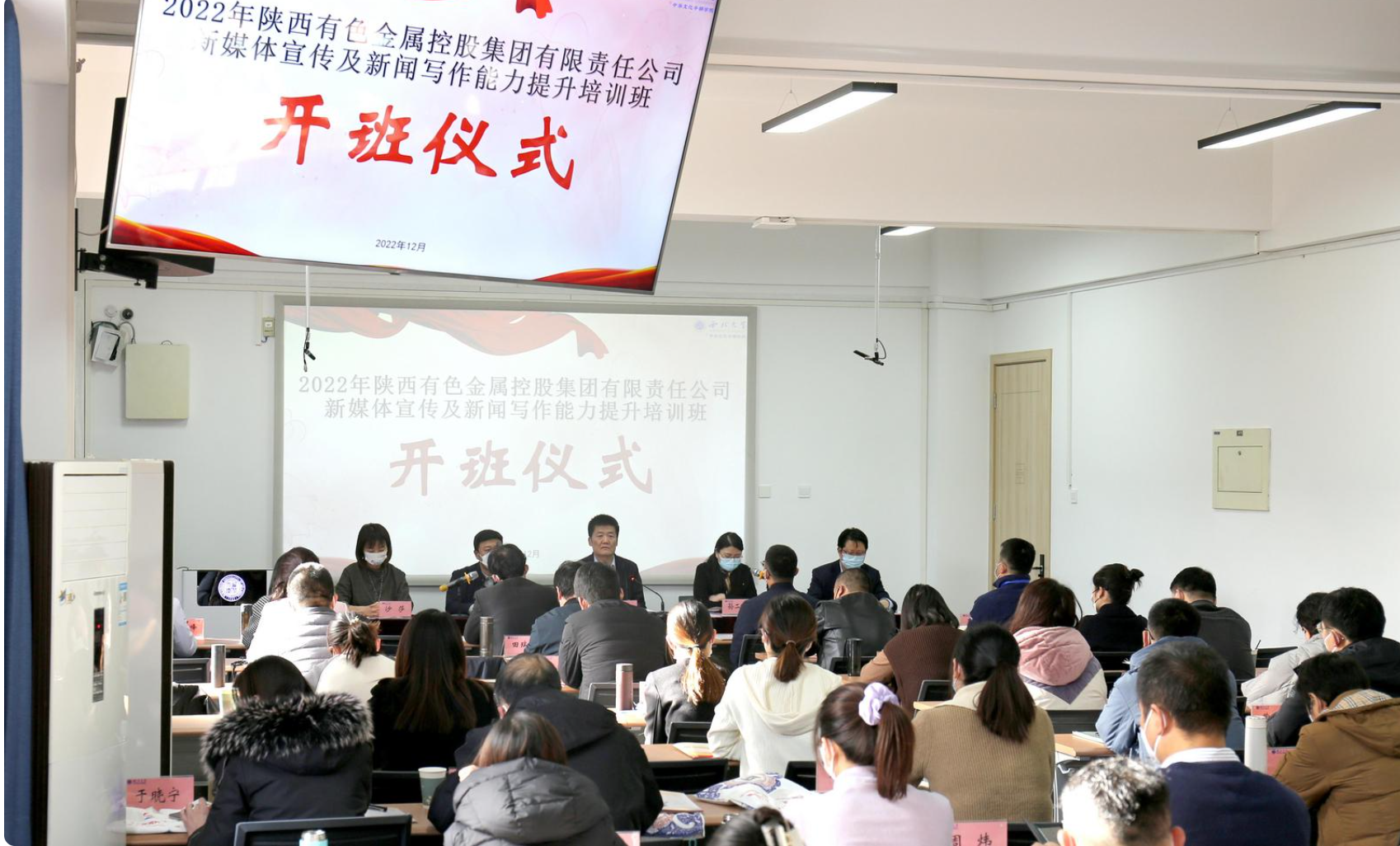 12月12日,陜西有色金屬控股集團有限責任公司新媒體宣傳及新聞寫作能力提升培訓班在西北大學中華文化干部學院開班。本次培訓班由陜西有色金屬控股集團有限責任公司、陜西省新聞工作者協會主辦,群眾新聞網、西北大學中華文化干部學院承辦。陜西有色金屬控股集團有限責任公司黨委副書記、董事、工會主席王小慶出席并講話,陜西省新聞工作者協會秘書長周凱致辭,西北大學中華文化干部學院常務副院長孫二麗出席。