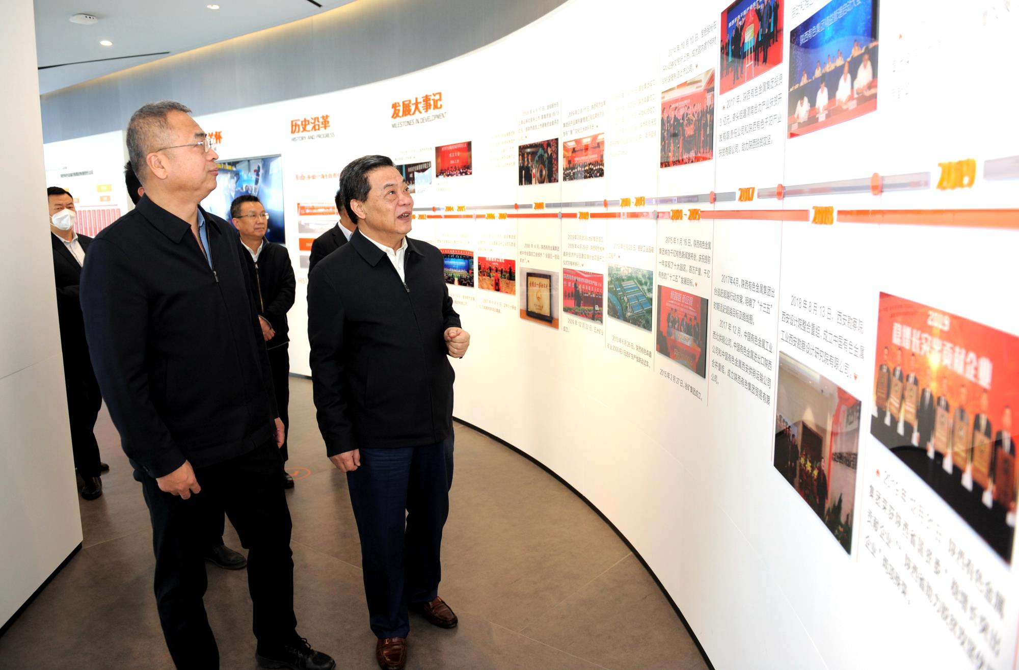 楊廣亭一行首先參觀了陜西有色金屬集團展廳,全面了解了集團發展歷程、產業規模、科技工作、主要產品等情況。