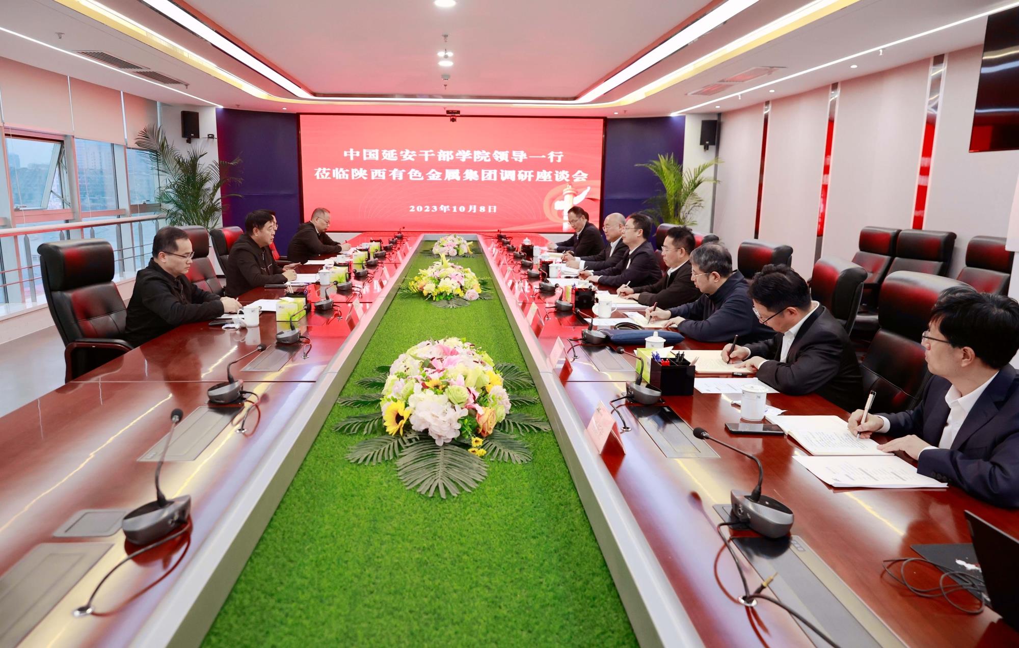 10月8日,中國(guó)延安干部學(xué)院院務(wù)委員賈波一行到陜西有色金屬集團(tuán)調(diào)研座談。集團(tuán)黨委書(shū)記、董事長(zhǎng)吳群英在金鉬股份會(huì)見(jiàn)賈波一行。雙方圍繞教學(xué)基地建設(shè)等合作事宜進(jìn)行了深入交流。