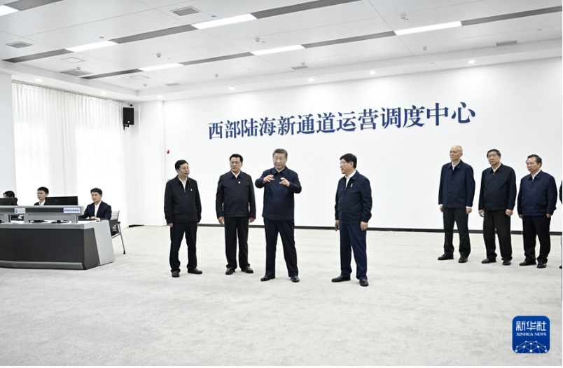 22日下午,習近平首先考察了重慶國際物流樞紐園區(qū)。他來到西部陸海新通道重慶無水港運營調(diào)度中心,聽取新通道建設(shè)情況匯報。習近平強調(diào),物流是實體經(jīng)濟的“筋絡(luò)”。建設(shè)西部陸海新通道,對于推動形成“陸海內(nèi)外聯(lián)動、東西雙向互濟”的對外開放格局具有重要意義。各有關(guān)方面要齊心協(xié)力,把這一標志性項目建設(shè)好、運營好,帶動西部和內(nèi)陸地區(qū)高水平對外開放。物流園區(qū)要積極運用先進技術(shù),不斷創(chuàng)新聯(lián)運模式,提高科學管理水平,在建設(shè)現(xiàn)代物流體系中發(fā)揮更大作用。