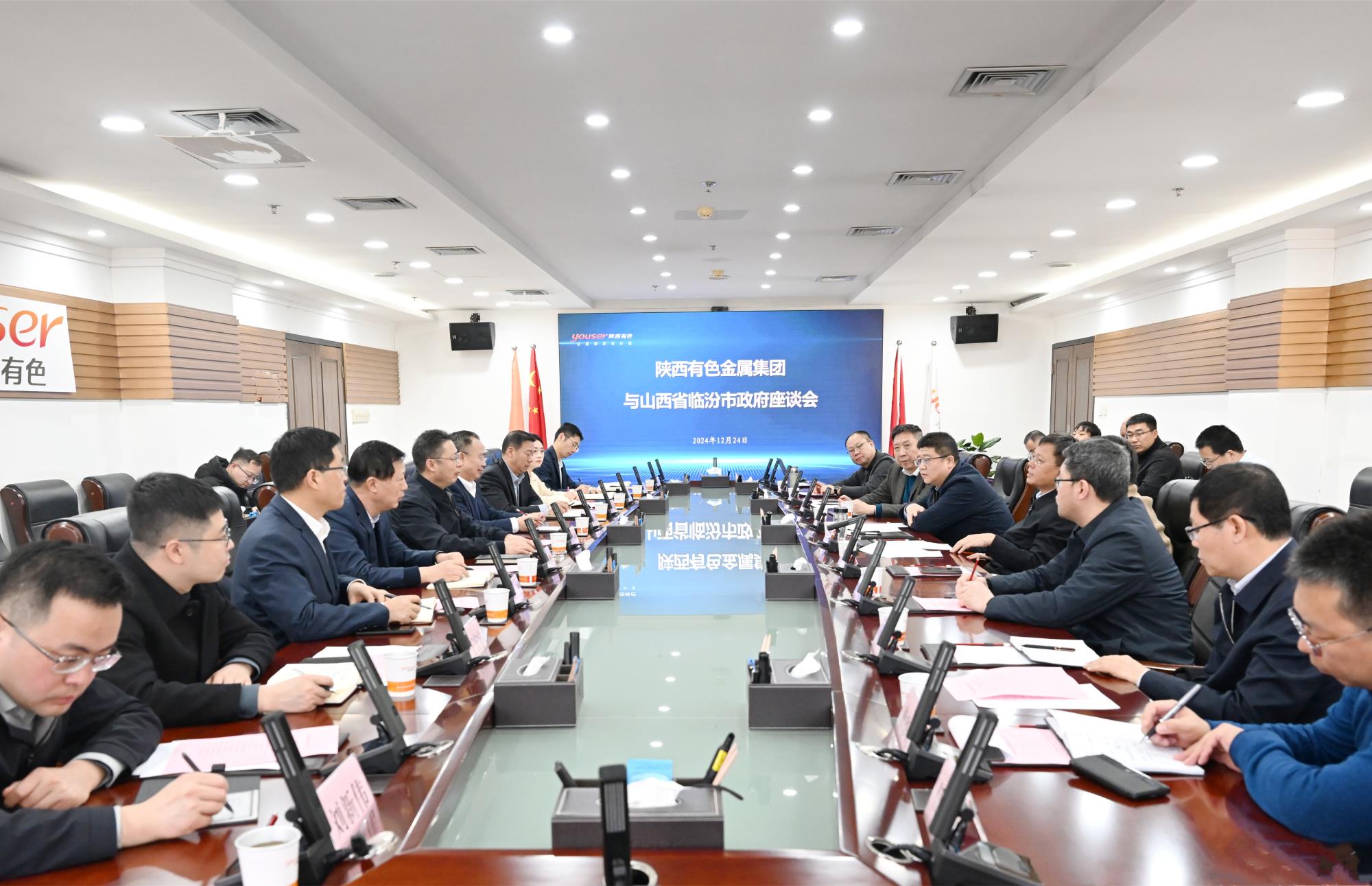 12月24日,陜西有色金屬集團黨委書記、董事長吳群英與山西省臨汾市委副書記、市長王延峰在集團總部座談。雙方就未來的深度合作進行了探討。集團公司黨委委員、副總經理黃忠良參加座談。