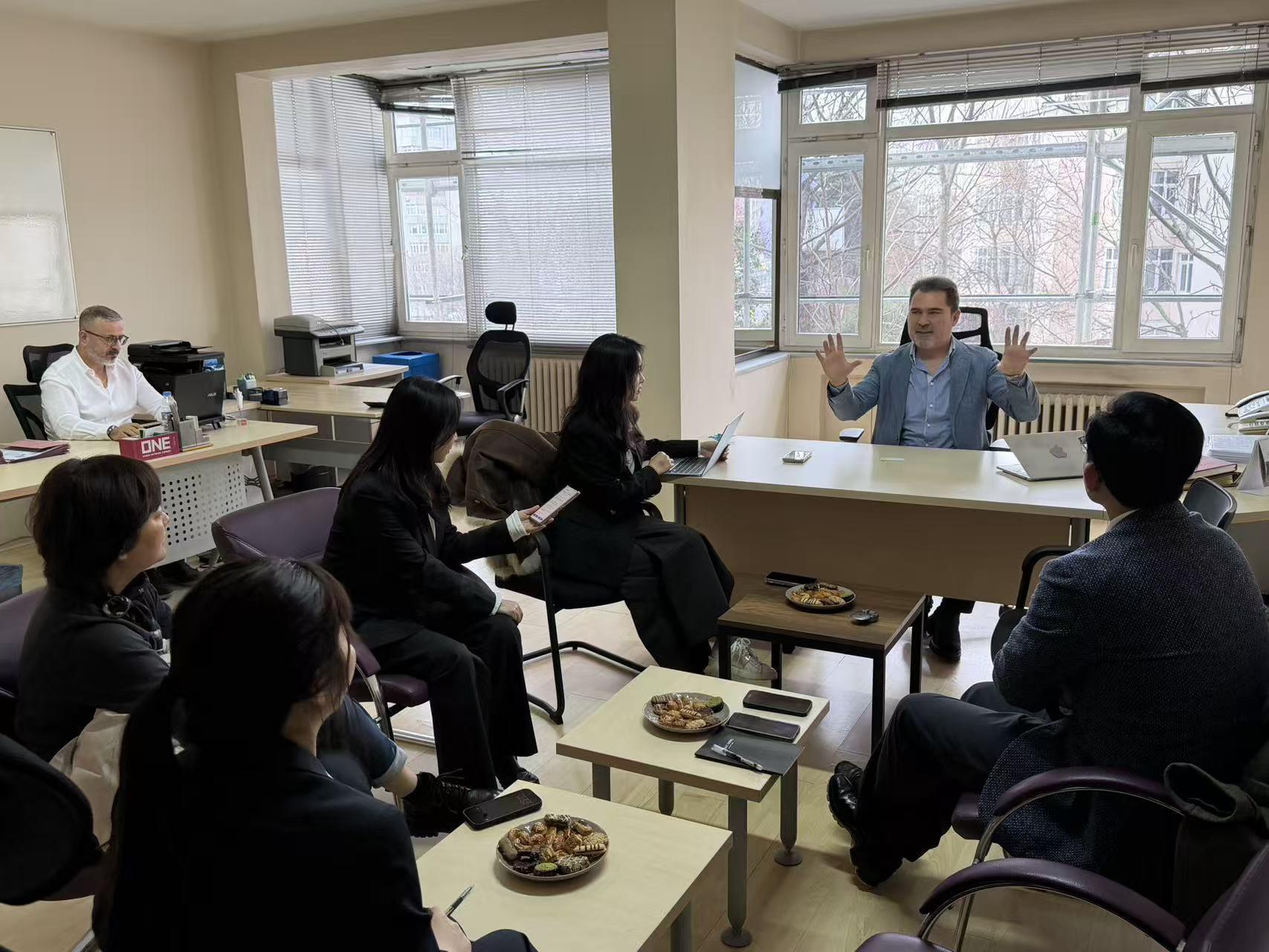 科工貿一行抵達土耳其伊斯坦布爾,與當地知名物流倉儲企業GTS物流公司進行座談交流時,楊樂詳細介紹了陜西有色金屬集團的品牌影響力與產業布局,以及科工貿依托集團優勢構建的多元貿易渠道,GTS物流公司負責人對科工貿業務體系與發展理念表示高度認可。雙方圍繞物流倉儲協作、跨境運輸通道搭建、信息互通共享等核心議題深入交換意見,并就下一步業務對接的具體路徑、時間節點及合作模式達成初步共識,為后續合作落地奠定基礎。