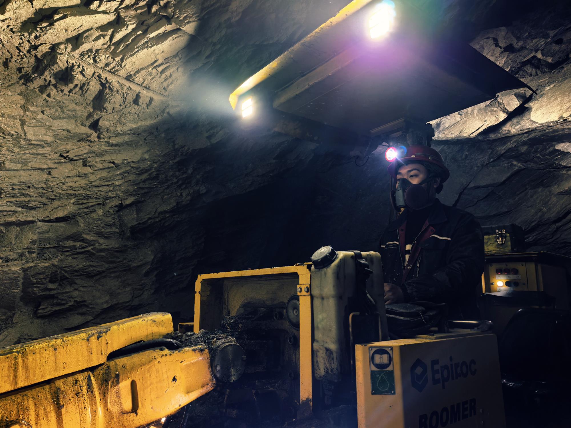 四方金礦井下人員正在操作掘進(jìn)臺(tái)車