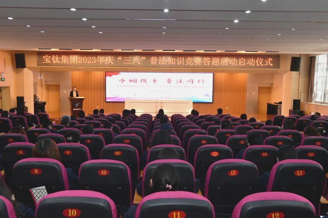 寶鈦集團工會為了營造尊法學法守法用法的良好氛圍,依法保障女職工合法權益及特殊利益,舉辦“巾幗攜手 普法同行”寶鈦集團2023年“慶三八”普法知識競賽網上答題活動。
