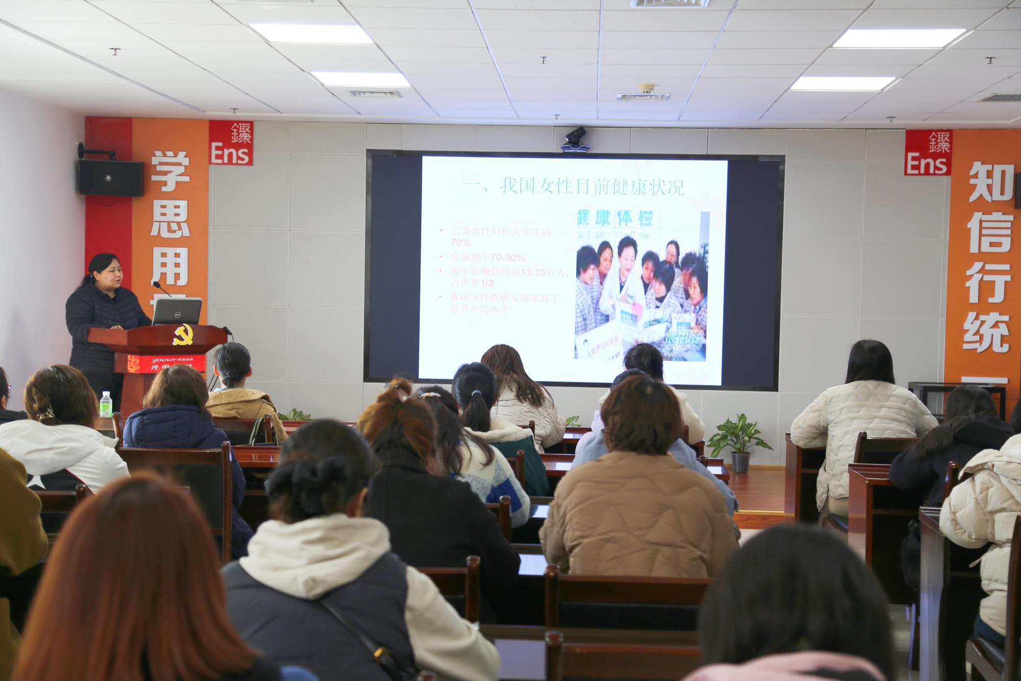 當天下午,公司工會邀請華山半導體原職工醫院副院長穆雅麗為全體女工開展了女性健康知識講座,穆雅麗通過案例分析及現場互動等方式,圍繞女性防癌及心腦血管疾病預防知識等方面進行詳細講解,引導女性同胞們要定期自檢、體檢,加強日常生活中的自我保健。與會人員紛紛表示受益匪淺。