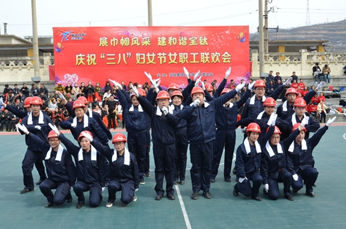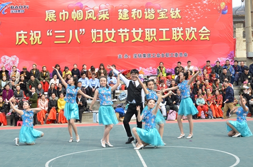 鈦城春意鬧,桃花灼灼開。3月7日下午,寶鈦集團老區燈光球場上又回蕩起了動人的歌聲、歡快的音樂,來自寶鈦各基層分會的500余名女職工歡聚一堂,以自編自導自演的大聯歡形式共同慶祝第107個“國際勞動婦女節”的到來。公司工會主席、紀委書記白林讓,副總經理丁忠杰,公司職工文化體育活動領導小組成員、各分會主席觀看表演。